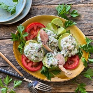 Estos aguacates rellenos de cangrejo son una deliciosa entrada para un almuerzo o también quedan maravillosos puestos en una gran fuente para acompañar una comida al aire libre. Es una receta ganadora!