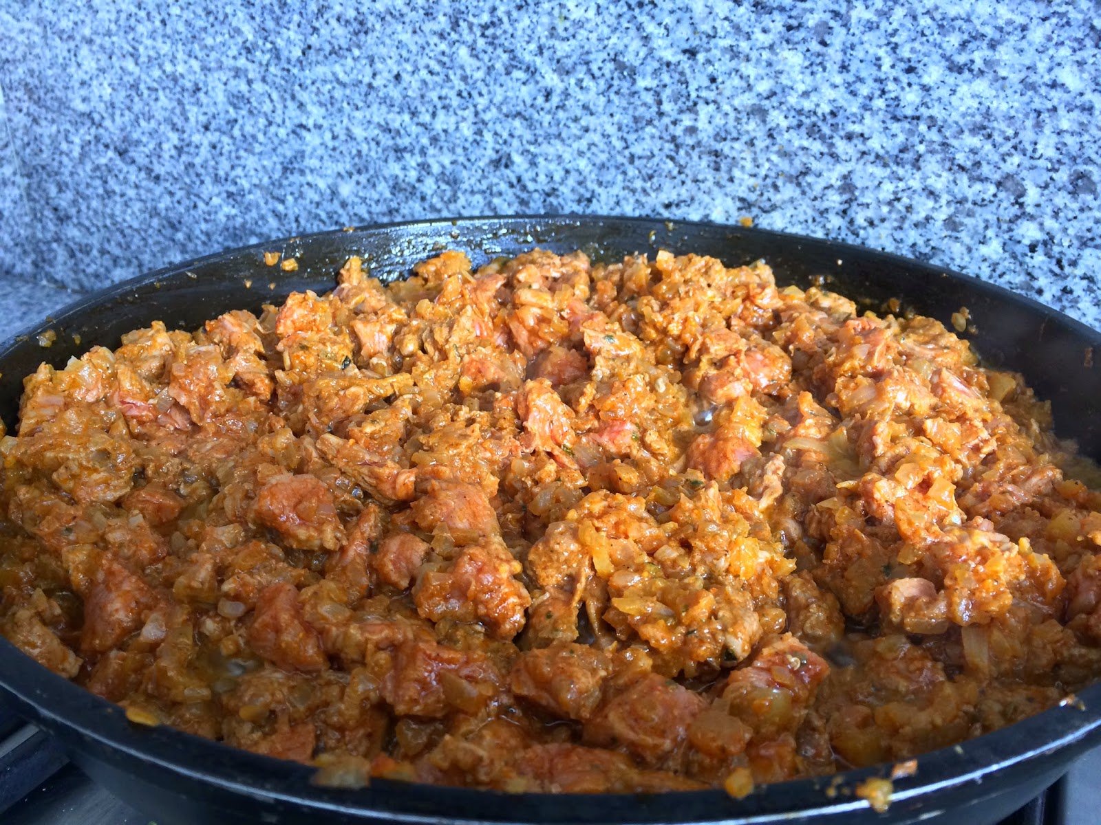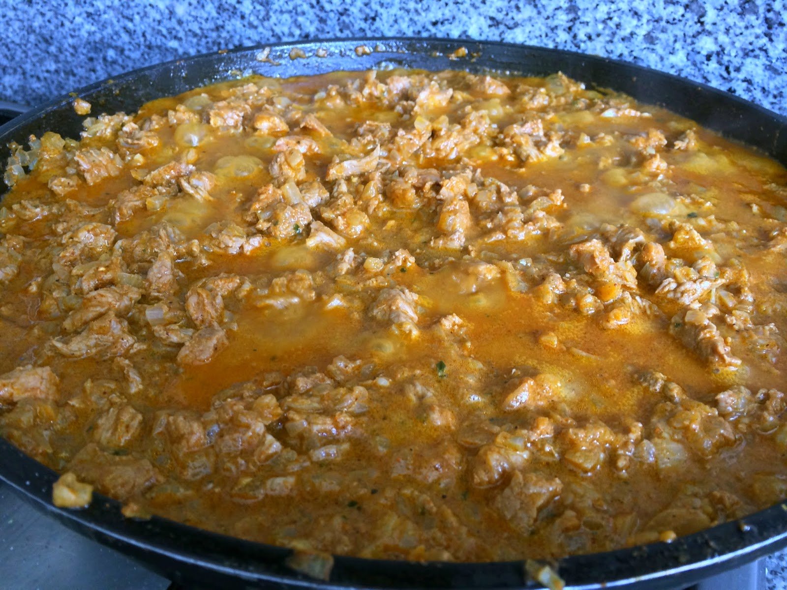 - Poner la carne, sal, orégano (moliendo las hojitas), comino y pimienta. Dejar cocinar unos 8-10 minutos.