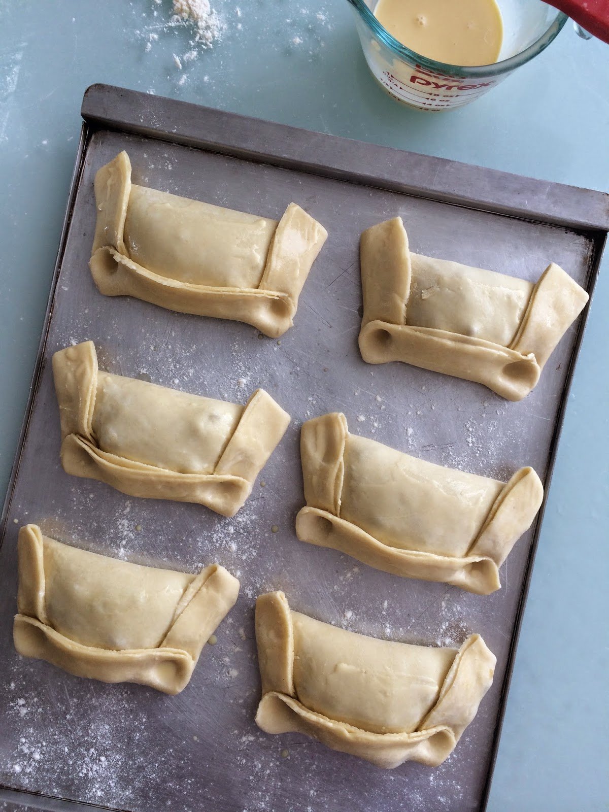 Listas para ir al horno. Para que queden mas doraditas sólo póngales por encima el huevo batido sin la leche.