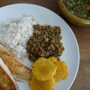 Felíz año!!!! Sólo les deseo salud, porque todo, todo lo demás nos llega si nos sentimos bien. Eso si, hay que soñar y trabajar en esos sueños, para que se cumplan. Y hoy que parece lunes y los lunes por lo general me gustan las lentejas bien sazonadas en mi plato, he hecho estas ricas lentejas al mas puro estilo ecuatoriano. Y caen perfectas ya que comenzamos el año y representan la abundancia. Acompañadas de un rico arroz blanco recién hecho, patacones con queso, salsa de ají y el pescado mas fresco que encuentren. Yo se que muchas personas aun siguen en la playa después de año nuevo, entonces se les hará mas fácil encontrar un buen pescado.