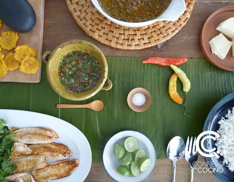 Los patacones son plátanos verdes cortados en rodajas y fritos. Luego se aplastan y se vuelven a freír. Se sirven con sal encima + salsa de ají y queso fresco.