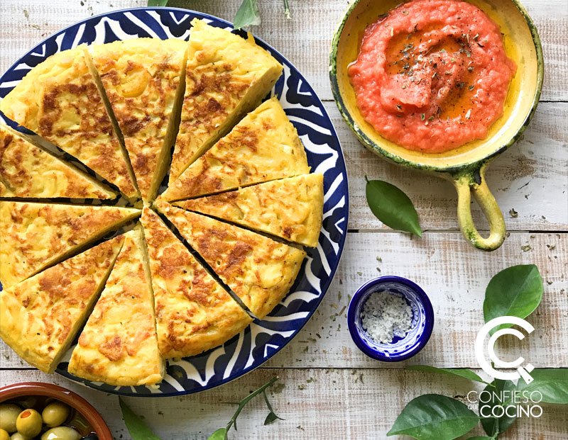 Tortilla española, tortilla de papas, tortilla de patatas o tortilla a la española. Con todos estos nombres se conoce a esta delicia de la gastronomía española, la cual la sirven como tapa (piqueo). Puede estar hecha solamente con papas y huevos, llevar cebolla, también chorizo o sobreasada, pimientos morrones…Hay tantas recetas, con tantas texturas, con tantos cortes de las papas, que jamás daremos con la correcta, mas bien, la «correcta» será la que mas nos guste a cada uno.